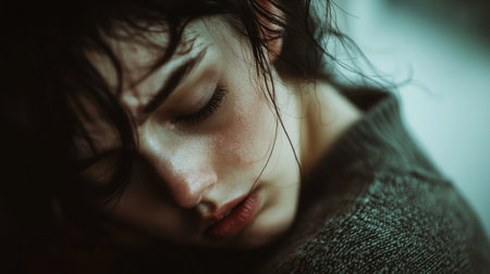 Portrait of a young woman in depression. Close-up.
