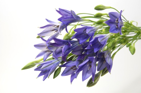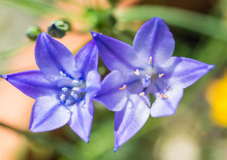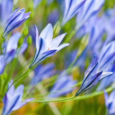 Fresh brodiaea flower, cluster-lily, on blue