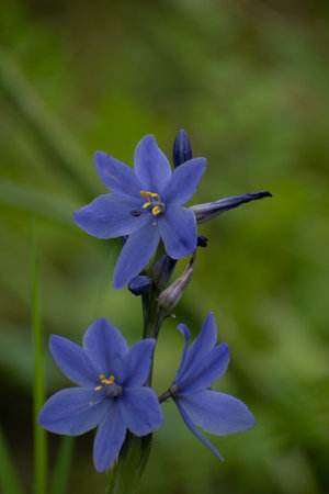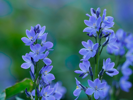 close-up of a Siberian squillflower blooming in spring, Poland