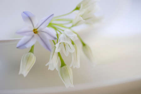 White flowers on a white background. Shallow depth of field.
