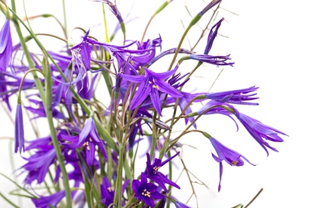 beautiful purple bell flowers close-up on blurred natural background