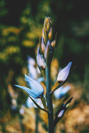 Flowers with blue bells. flowers in the wild. View from the top point.