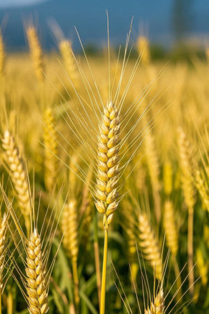 golden wheat field in the countryside, close-up of ears