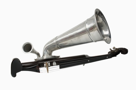 Old acoustic horn isolated in a white background with reflection