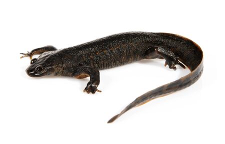 Salamander (Himalayan Newt) on white background and Living On the high mountains at doiinthanon national park,Thailand