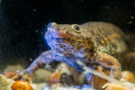 Closeup on an aquatic gravid female Chinese Blue -tailed fire-bellied newt, Cynops cyanurus