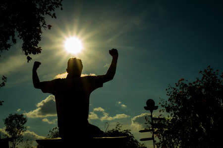 Silhouette of a man with hands raised. Received power from god
