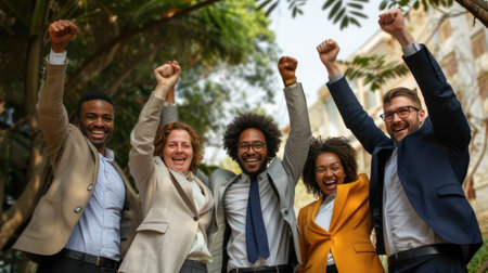 Triumphant success: in sports, in competition, in personal goals, victory celebration and business achievement, triumphant moment of success and accomplishment in corporate endeavors.