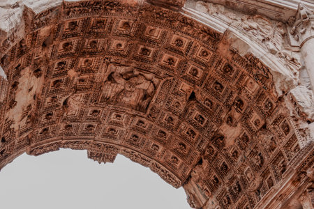 Roman triumphal arch for victorious emperor detailed inscriptions sculptures