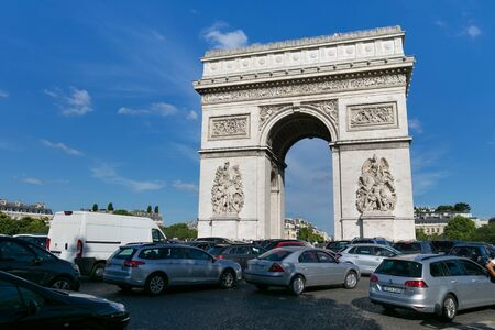 PARIS, FRANCE - JUNE 23, 2017: View of the famous Triumphal Arch. The Arc de Triomphe honours those who fought and died for France in the French Revolutionary and Napoleonic Wars.