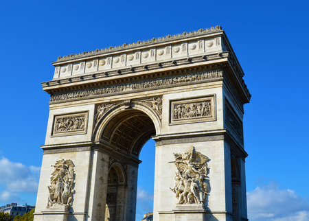 Architectural fragment of Arc de Triomphe. Arc de Triomphe de l'Etoile on Charles de Gaulle Place is one of the most famous monuments in Paris. France.