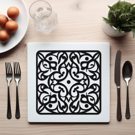 placemats, beautifully designed in a stunning black and white vector stencil style, add a touch of elegance to any table setting, perfect for dinner parties, weddings, and special occasions, featuring a modern and sophisticated aesthetic, ideal for diy craft projects and home decor enthusiasts., ai generated