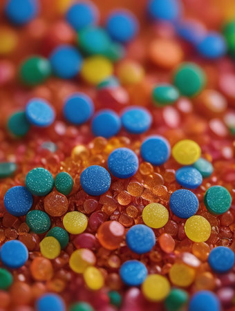 A close-up view of colorful sprinkles scattering across a flat surface, creating a vibrant and playful scene perfect for celebrating desserts, baking, and joyful moments.
