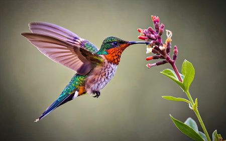 hummingbird taking off from flower, its wings fluttering in mid-flight, created with generative ai