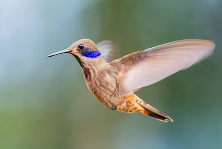 Hummingbird Violet Sabrewing flying on blured background. A beautiful shot of a hummingbird in flight. Wildlife scene from Costa Rica.