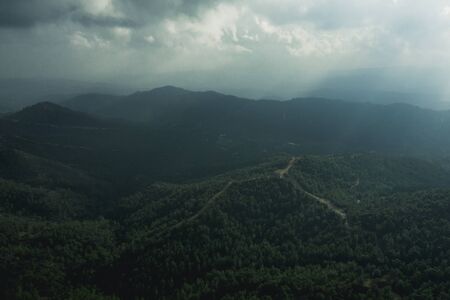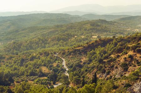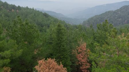 Cyprus mountains in myst or fog, beautiful green nature landscape.