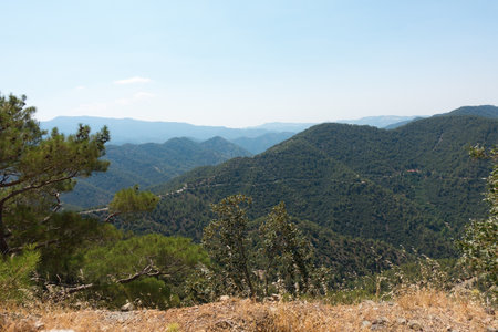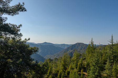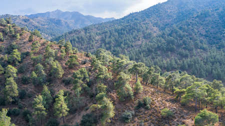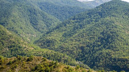 Mountain ridge covered with pine trees in Troodos mountains, Cyprus