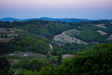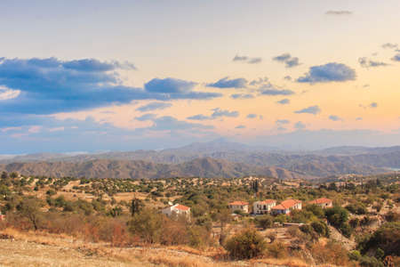 The beautiful natural mountain landscape in the Cyprus massif in the background at sunset