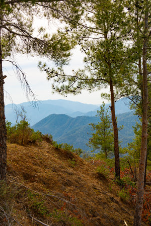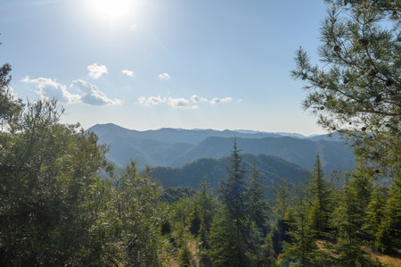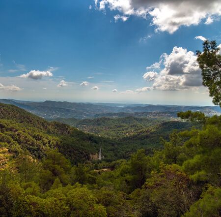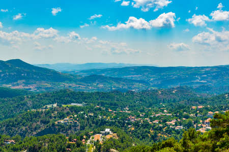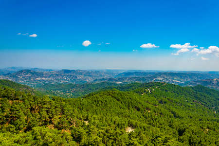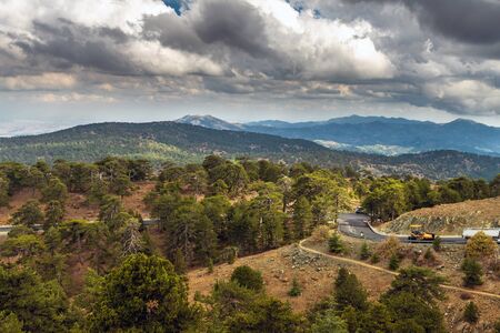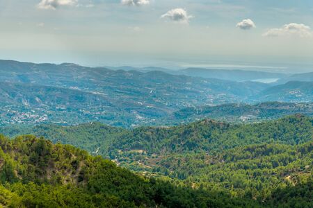 Olymbos, Cyprus - Oct 10. 2019. View from Mount Olympus , the highest peak of the island of Cyprus. Troodos mountains