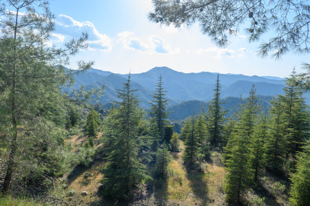 Lebanese cedars in a mountain forest in the central part of the island of Cyprus;
