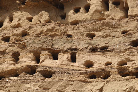 Huge holes in sandstone cliffs of the Negev desert, Israel