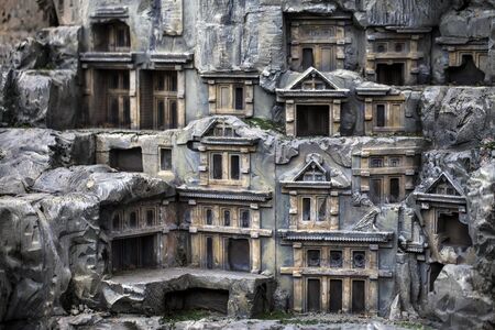 15th April 2018; Antalya, Turkey - Tombs in the rocky mountain in ancient city of Termessos. Antique city of Solyms in north Antalya mountains.