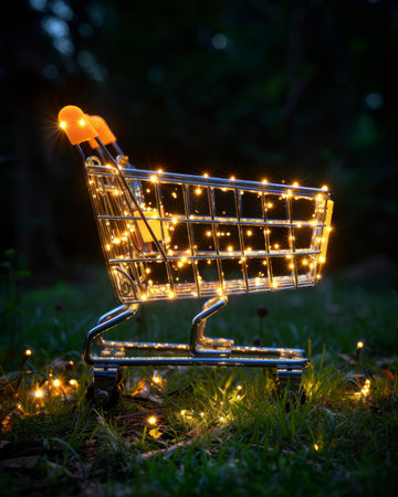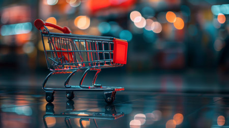 Mini shopping car in front of a nightly backdrop