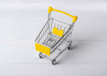 Empty shopping cart on a white wooden background