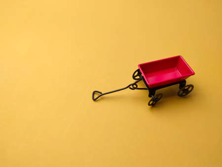 Close-up empty red shopping cart on yellow background