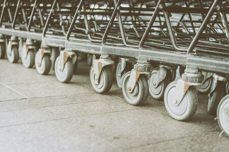 shopping carts with wheels for shopping malls land on the floor in the parking lot of customers.