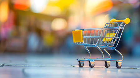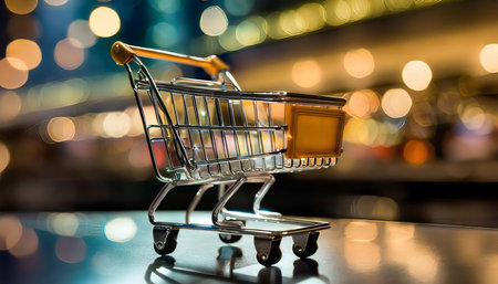 Shopping cart with bokeh background, shopping online concept.