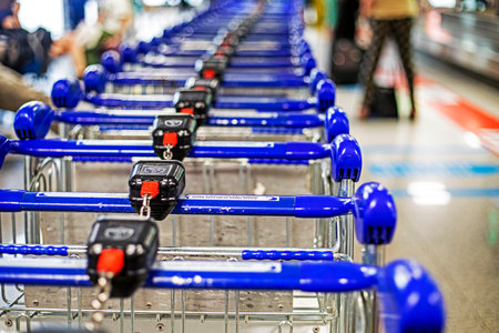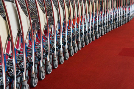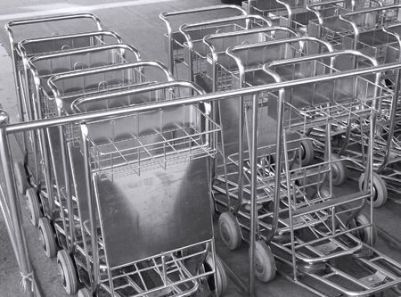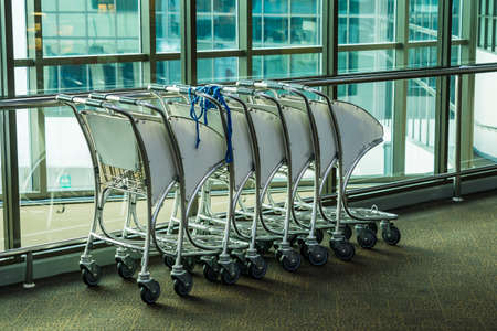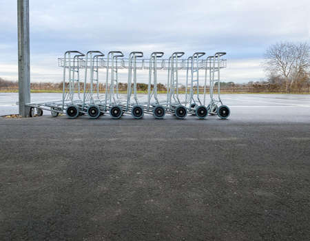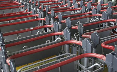 detail of a row of baggage trolleys for an airline terminal
