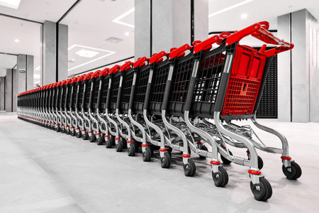 Shopping Cart Trolley in row Retail department store Consumer business