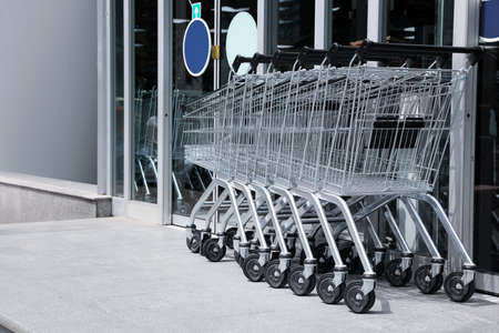 Row of shopping carts near store outdoors