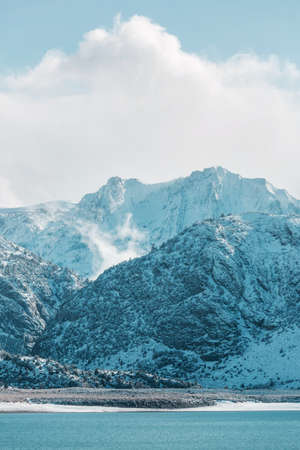 Beautiful nature scene in early winter mountains. Sierra Nevada landscapes. USA, California. Travel and winter vacation background.