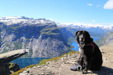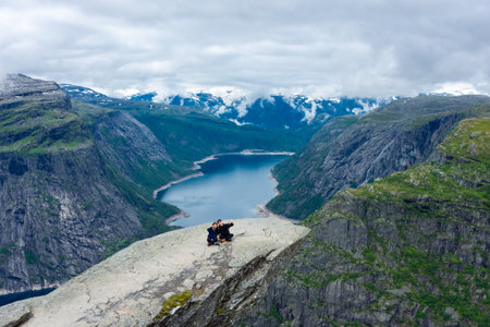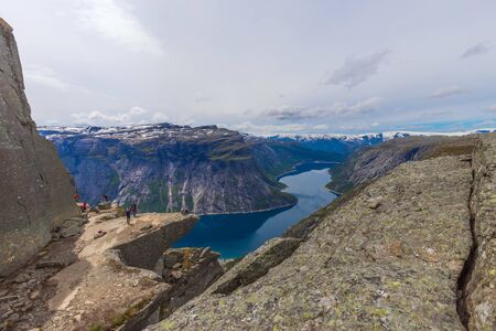 People on rocks harsh Norway, Trolltunga, popular place