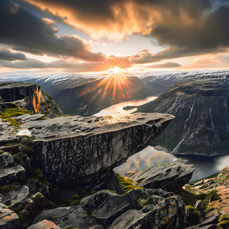 Trolltunga: The Rock Outcrop Bathed in Dramatic Sunrise Light