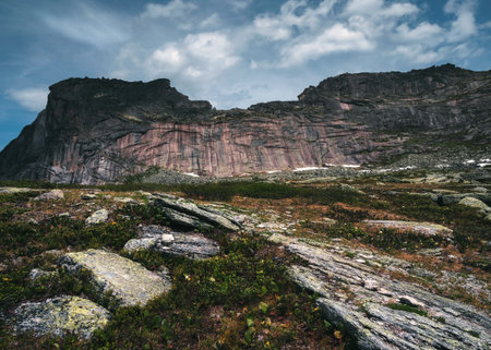 Hiking in Hordaland, Norway. Views along the trail to Trolltunga. Summer adventure.