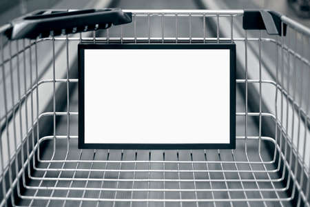 Advertising sign in a shopping cart. Horizontal image with copy space.