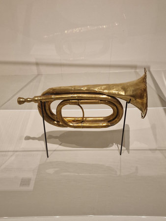 Toledo, November 2, 2024: old dented military bugle from 1935