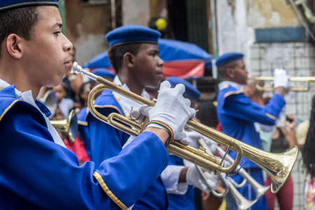Salvador, Bahia, Brazil - July 02, 2015: Musicians are seen during the Bahia independence parade in Lapinha neighborhood in Salvador.