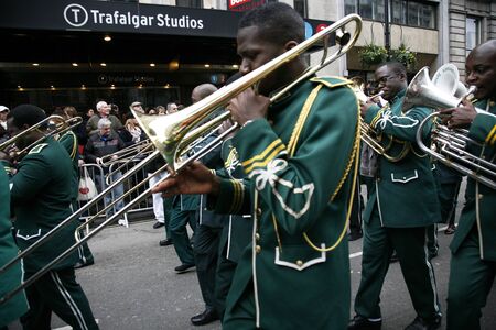 London, UK - January 01, 2012: Marching Band participate in the New Years Day Parade. More than 10,000 performers represent for 20 countries world-wide like marching bands, cheerleaders, clowns acrobats etc.