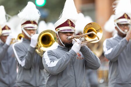 New Orleans, Louisiana, USA - February 23, 2019: Mardi Gras Parade, The McDonogh Senior High Marching Roneagles, performing at the parade