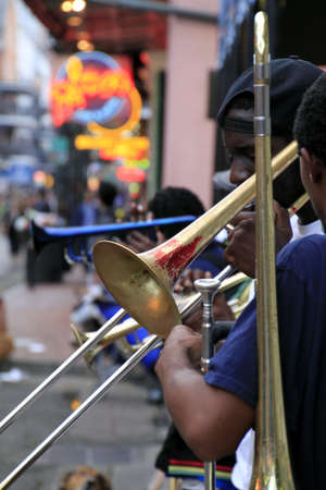 NEW ORLEANS, UNITED STATES - Sep 09, 2019: 09 September 2019 - New Orleans, USA: Jazz musicians performing outdoors in the streets of New Orleans, USA.