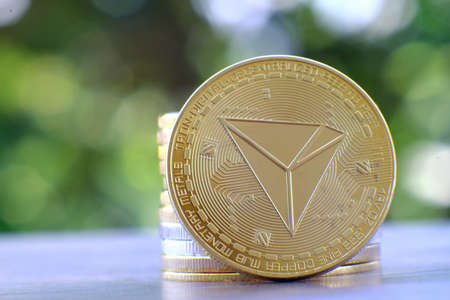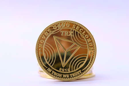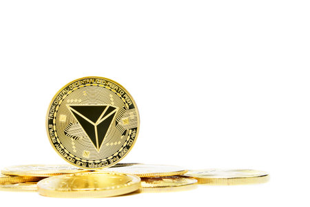 Tron golden coin Cryptocurrency isolated, mining, future money