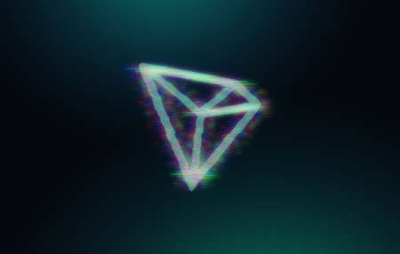 glitch effect tron cryptocurrency coin on colorful background, cryptocurrency concept color art