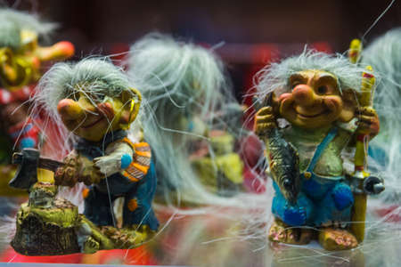 TALLINN, ESTONIA - YUNI 14, 2015: Toy trolls and witches in a shop window on one of the Central streets, Tallinn, Estonia