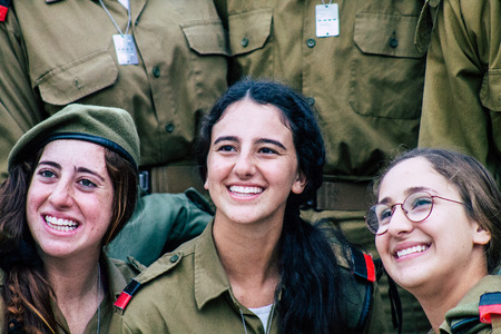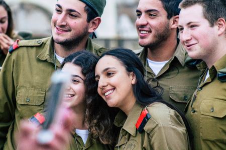 Jerusalem Israel December 11, 2019 View of Israeli soldiers having fun front the Western Wall of the old city of Jerusalem on the evening