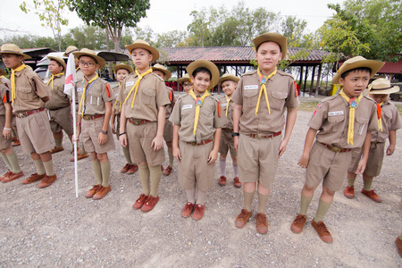 Chonburi, Thailand - April 4: unidentified Thai Boy Scout and in 20th THAILAND NATIONAL SCOUT JAMBOREE as part of the study on April 4,2015 in Vajiravudh Scout Camp, Chonburi, Thailand.