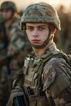 Young Soldiers Preparing for Training Exercises at Dawn in a Military Base